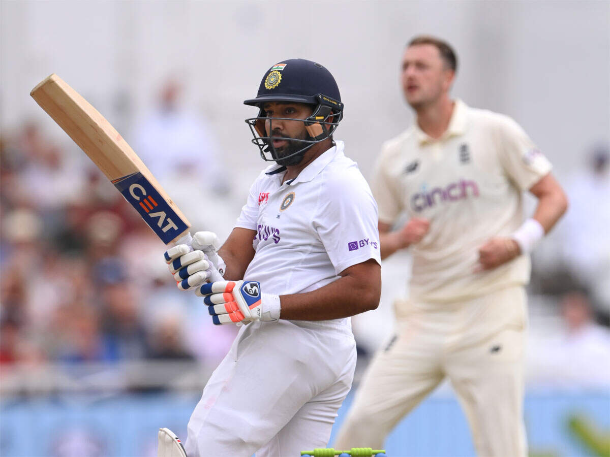 A well-set Rohit was was caught by Sam Curran on the fence off Ollie Robinson, playing his trademark pull shot.