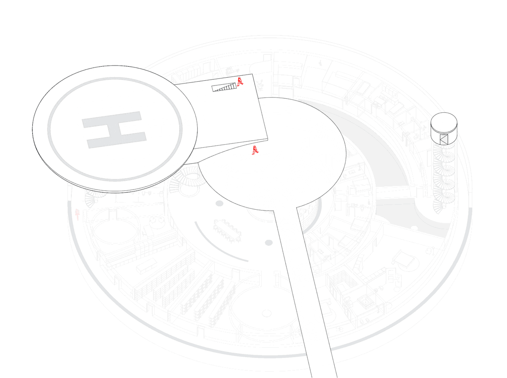The UHPB has a helipad for rapid arrivals or departures and a minimal above-ground footprint. It's large enough for multiple families and spacious enough to house a gym, grotto-like swimming pool, and other facilities that might help inhabitants stay sane and not murder one another — a genuine concern when law and order in the wider world have been whittled away to mere memories.