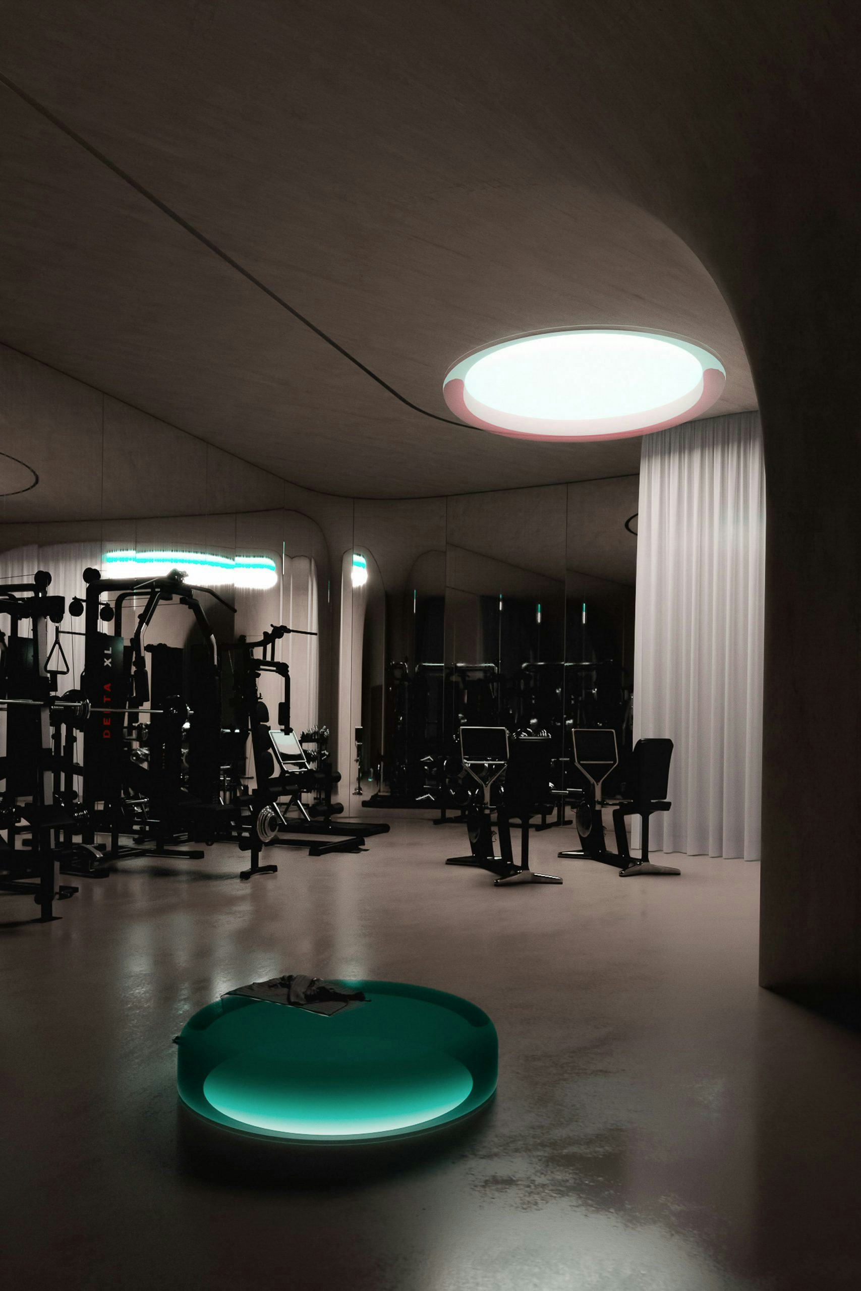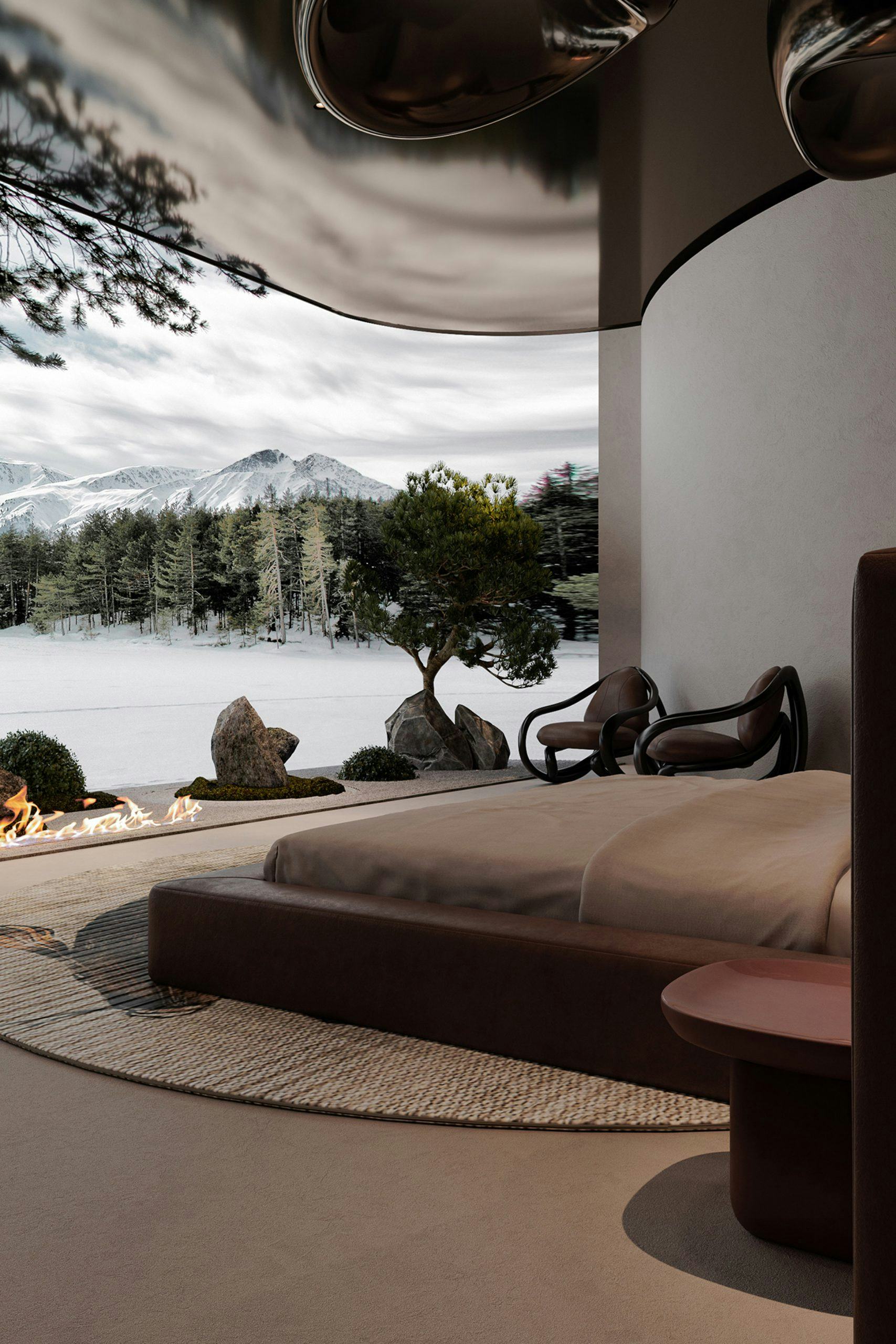 Envisioned as two intersecting concrete shapes — an inverted cone plugged into the side of a large wheel laid flat, the UHPB's minimalism is unsettling for a building that's meant to offer coziness and comfort. Concrete isn't the warmest or most humanist of mediums to begin with but limiting the soft furnishings, artworks and other objects most people associate with a "home" make the project feel far more like a work of science-fiction than something we'd actually want to count out the days of a legitimately civilization-unraveling lockdown in.