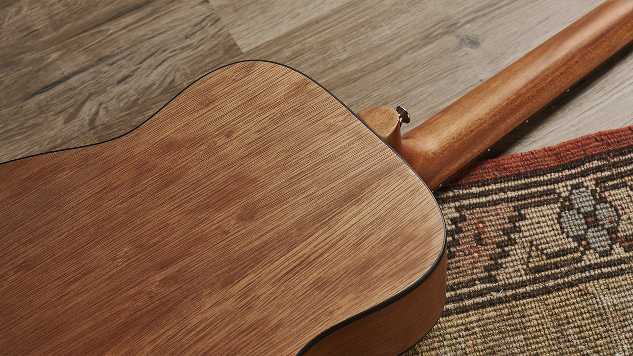 Although polished to a decent standard, the frets were slightly scratchy when throwing in vibrato while fingerpicking. Not a huge deal when considering this guitar’s prerogative, but something a more experienced player may notice. The miniature dreadnought-style body is well balanced, and I foresee a very comfortable playing experience for learners, as the lower bout doesn’t dig into your right arm the way some full-sized dreadnoughts do.