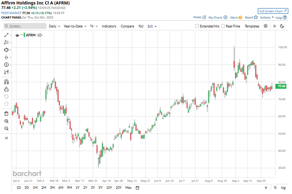 Over the past 52 weeks, AFRM stock has staged a remarkable rebound, up 62%, underscoring how strongly investor sentiment has swung back toward high-growth fintech plays. On a year-to-date (YTD) basis, the stock has also delivered solid gains of 18% as markets look for growth stories in the digital payments and BNPL space. In the more recent stretch, the announcement of a deeper collaboration with Google around its Agent Payments Protocol (AP2) has acted as a fresh catalyst, fueling a pronounced uptick in trading volume. AFRM stock closed up by 6% on Oct. 20.