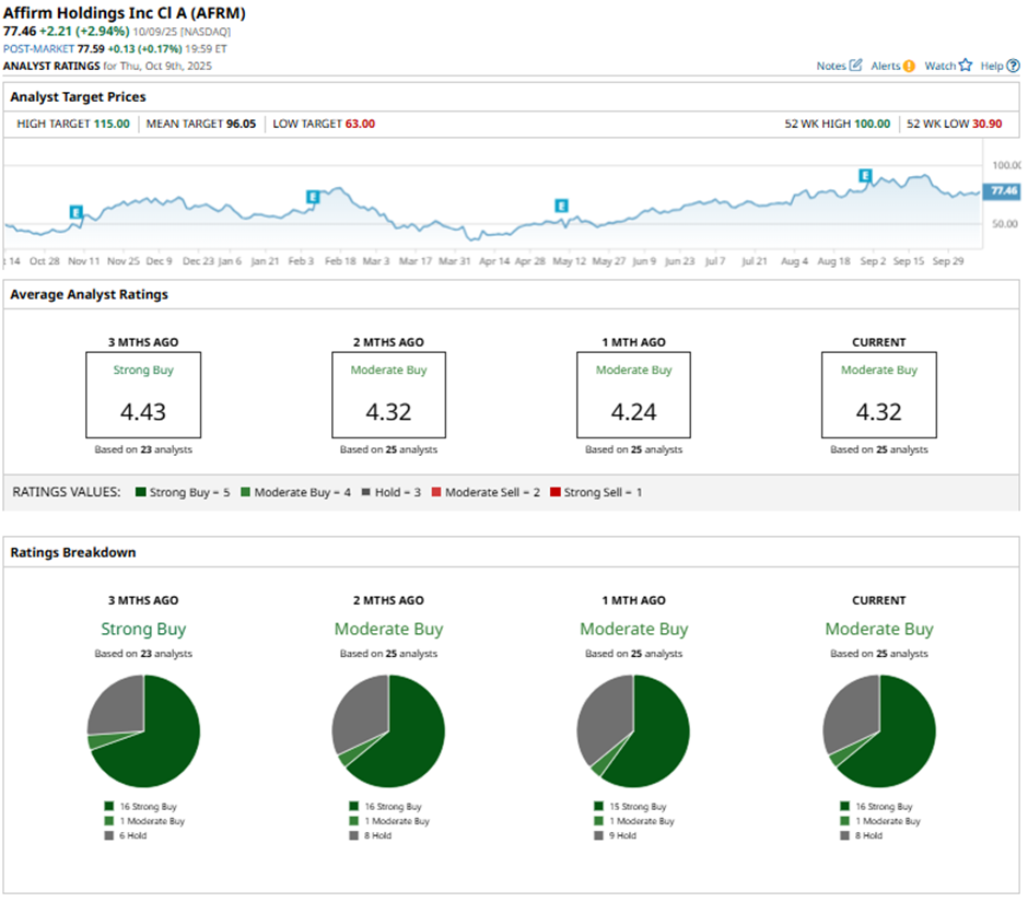 Earlier this month, Rothschild Redburn upgraded Affirm stock from “Neutral” to “Buy,” raising the price target from $74 to $101. The upgrade reflects Affirm’s strong return over the past year and its continued success in the U.S. market. Analysts also highlighted international expansion as an additional upside and praised the company's established products and merchant partnerships, which support a larger addressable market and favorable long-term prospects.