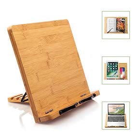 This bamboo book stand that works with tablets & laptops, too