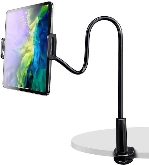 This gooseneck tablet and phone holder is ideal for watching TV, following recipes, home workouts, or adding another screen to your office setup. The mount on this holder is adjustable, making it compatible with a wide range of devices, and it rotates a full 360 degrees so you can find the best viewing angle whether you're at work or play.