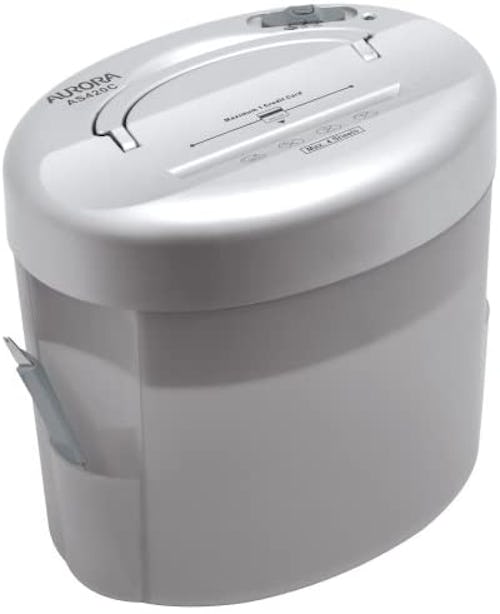This compact paper shredder is a handy little helper stands at just 10 inches tall but is plenty powerful, shredding up to four sheets or one credit card per pass. Durable steel cutters shred papers to confetti with ease, and the wastebasket can hold up to 40 shredded sheets before needing to be emptied.