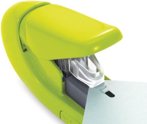 Standard staples need to be replaced and must be removed before shredding papers. This genius stapler keeps your papers together by fastening them instead and works for stacks up to five pages.