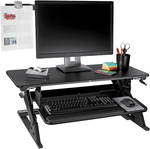 Not only does this monitor stand raise your screen to eye level so you’re not hunching over all day, but it’s also decked out with a sliding drawer letter tray to keep loose papers and files neatly out of the way, and the four side compartments are great for holding notepads, pens, phones, and other small items.