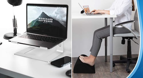 While you're knocking out projects one after the other, you should take care to stay comfortable. Consider adding a laptop stand that helps with neck strain, while a wobble cushion prevents slouching.