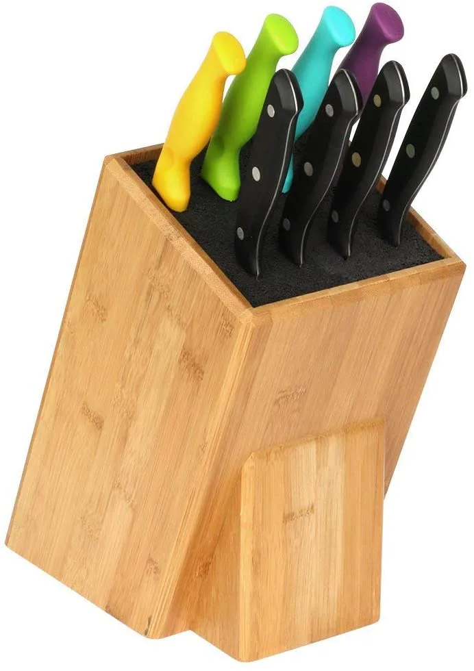 When you drop your knives into a drawer, they can get dulled. But when you slip them into this slot-less knife rack that shouldn’t damage the blades, they’re held securely and are easy to see and grab. Your knives won’t have to fit a preset shape or collection, either, because they’ll slide into an array of flexible rods that’ll accommodate any knife up to 8 inches long.
