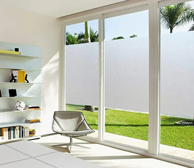 Want a little privacy without covering your entire window and view with fabric or blinds? Mount this frosted film directly to the glass in whatever spot you'd like. It allows the light and parts of the view to come through, and it's easy to cut into the size you want. Plus, it's simple to install.