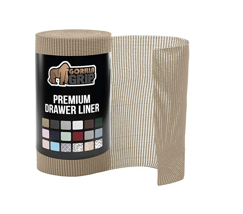 Do you want everything to stay still when you open your drawers (rather than sliding around)? Cut some of this drawer liner and fit it into the bottom of your drawers. It has a grippy texture, so nothing moves. It's also great for shelves — giving dishes a grippy place to land — and comes in lots of colors.