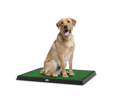 If you’ve ever wished for indoor plumbing for your pup so you don’t have to race out in the middle of the night, here it is. This artificial-grass puppy pad gives the dog a place to go indoors during house training or for emergencies. The tray underneath catches the mess and you can clean it up when you get up or home.