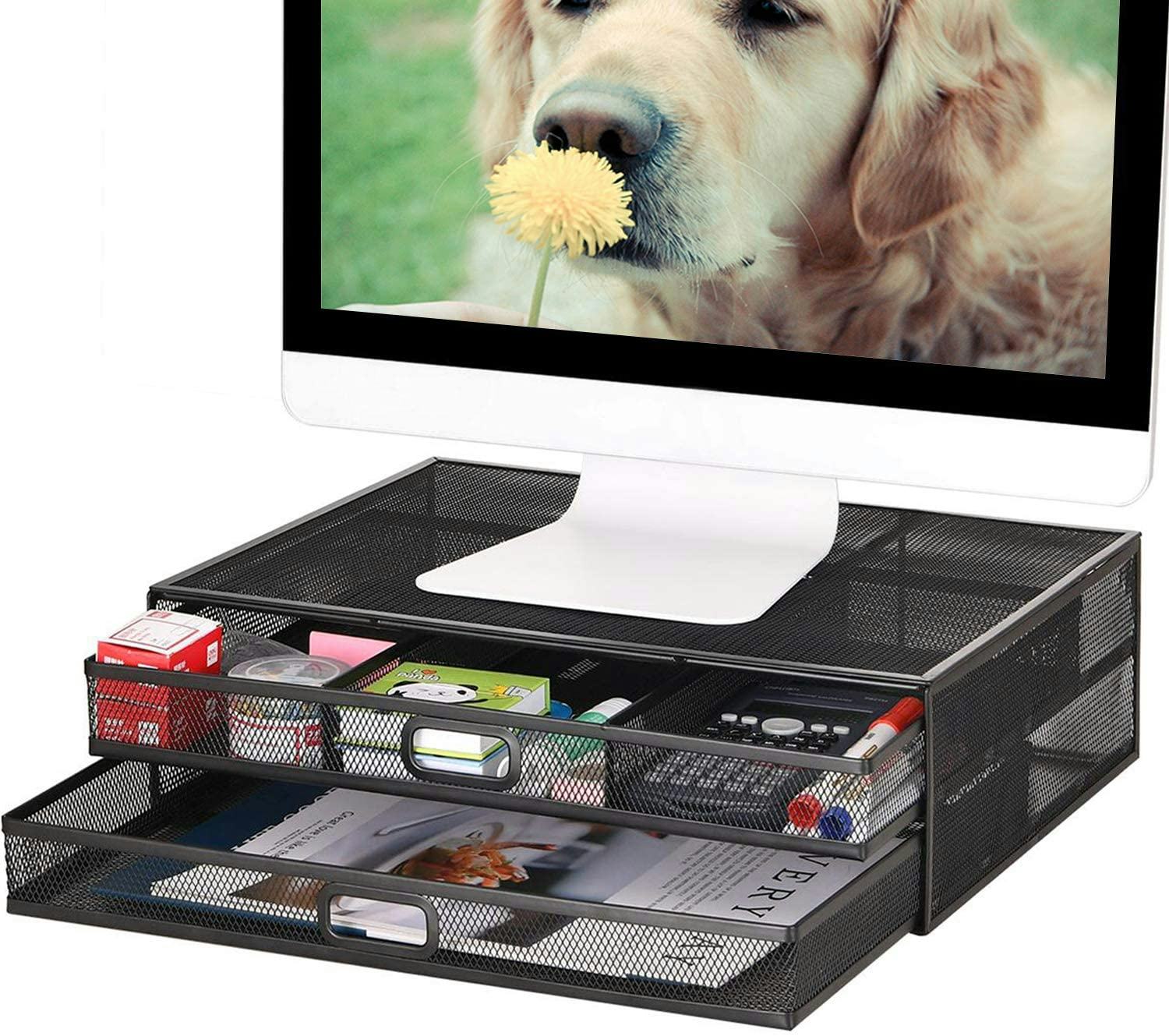 This monitor stand performs double duty, acting as a riser that elevates your screen to a comfortable viewing angle (see ya later, sore neck) while also offering a place to stash desk essentials, like sticky notes, paperclips, and pens. It's a two-in-one way to clear up clutter while making your workday much more comfortable.