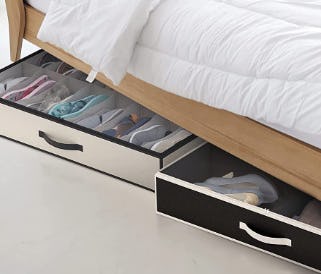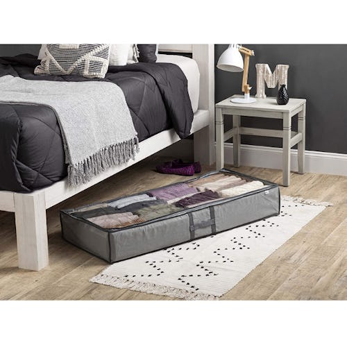 You can tidy up that pile of shoes with the help of this under-bed organizer. The pack is designed with space for four boots and 16 pairs of shoes — and thanks to the clear covers, it’s simple to see what’s inside each organizer. Plus, the fabric is durable yet breathable and features handles on the sides.