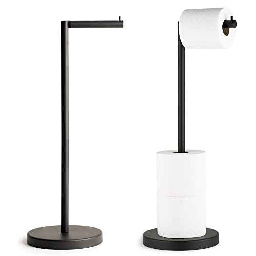 Marmolux Acc - Free Standing Toilet Paper Holder Stand | Bathroom Storage for 4 Rolls of Toilet Tissue | Modern Stainless Steel Matte Black Toilet Paper Stand.