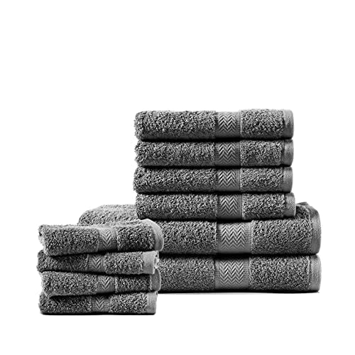 Grey Bath Towels Set - 10 Piece 100% Cotton Bath Towels, Super Absorbent Hotel Collection Towels, Luxury Bath Towel Sets for Bathroom, 2 Bath Towels, 4 Hand Towels, 4 Washcloth - Grey Towels