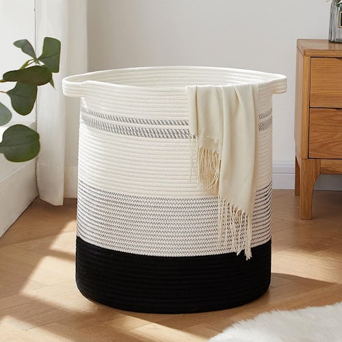 When it comes to cleaning up clutter, baskets are your best friend. Toss anything from laundry to toys to pillows into this decorative storage basket instead of onto the floor and your clutter looks good in the room. This woven basket has no sharp edges to catch on fabrics, has big handles so you can move it around, and is big enough to handle whatever you toss into it. It comes in three colors.