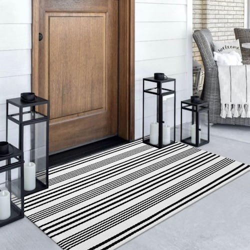 Your front door is the first impression people get of your dwelling so why not make it splashy? Start with this striped outdoor rug that looks great, feels good underfoot, and comes in six sizes and three colors so you can customize the look to your space. It’s machine washable, UV treated, and water-resistant so it will look great for ages.
