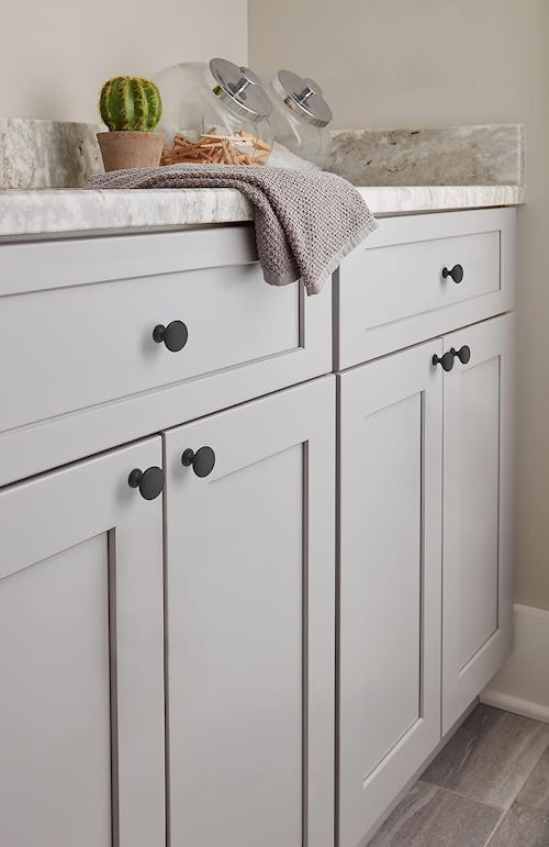 A quick, easy, dust-free — and super affordable — way to update your kitchen is to change out all the nobs to something modern. You might discover that your cabinets don’t need to be replaced at all. This matte black cabinet knob is a great place to start. The clean lines and organic shape will transform your kitchen in minutes. Just unscrew the old ones and screw these in. There are four finishes.