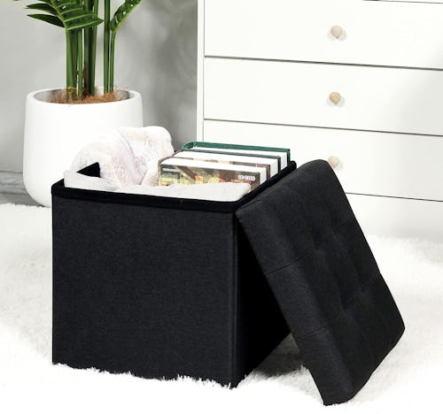 Set one of these clever storage ottomans down in front of an armchair as a soft place to put your feet up. It will also help keep the living room clean of clutter by giving you a readily accessible place to stash toys, game accessories, extra pillows, shoes, or whatever else is a problem. Line two or three of them to create a coffee table or at the foot of the bed and you will have so much storage. It comes in four colors.