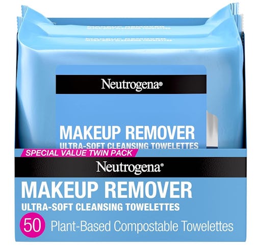 These makeup wipes by Neutrogena are massive fan-favorites, with a wildly high 4.8-star rating after over 111,000 shoppers weighed in. They're 100% plant-based and compostable, and feature a formula with three emollients that dissolve makeup, capture oil, dirt, and sunscreen, and lift them all away with ease. This is a two-pack with 25 cloths each.