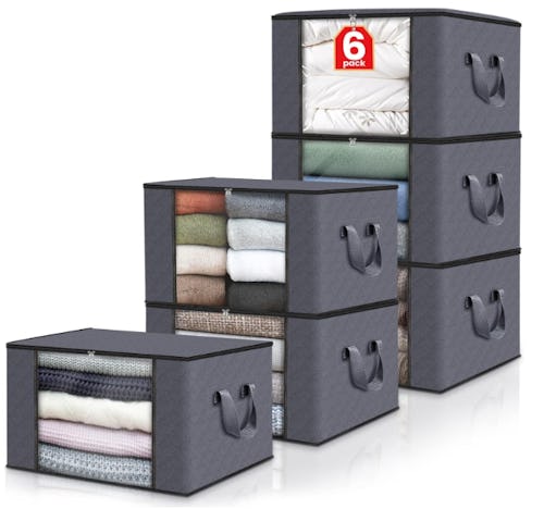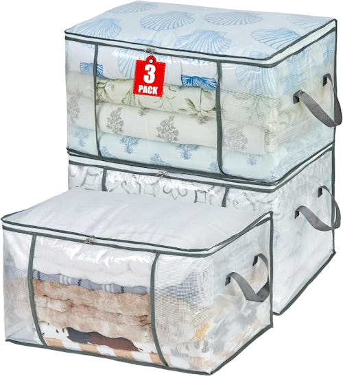 Each one of these foldable storage bags can hold up to two king-size comforters, making them a spacious option for linens and clothes. They're made from non-woven fabric and boast sturdy side handles and double zippers for a secure closure.