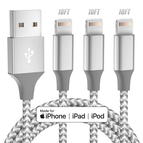 For the maximum reach, these 10-foot braided lightning cables will allow you to charge your device super far from your closest outlet. These are MFi-certified, feature a reinforced connector to prevent fraying and breaking, and even come in two color options. If you act fast, you can get these for a shockingly low price.
