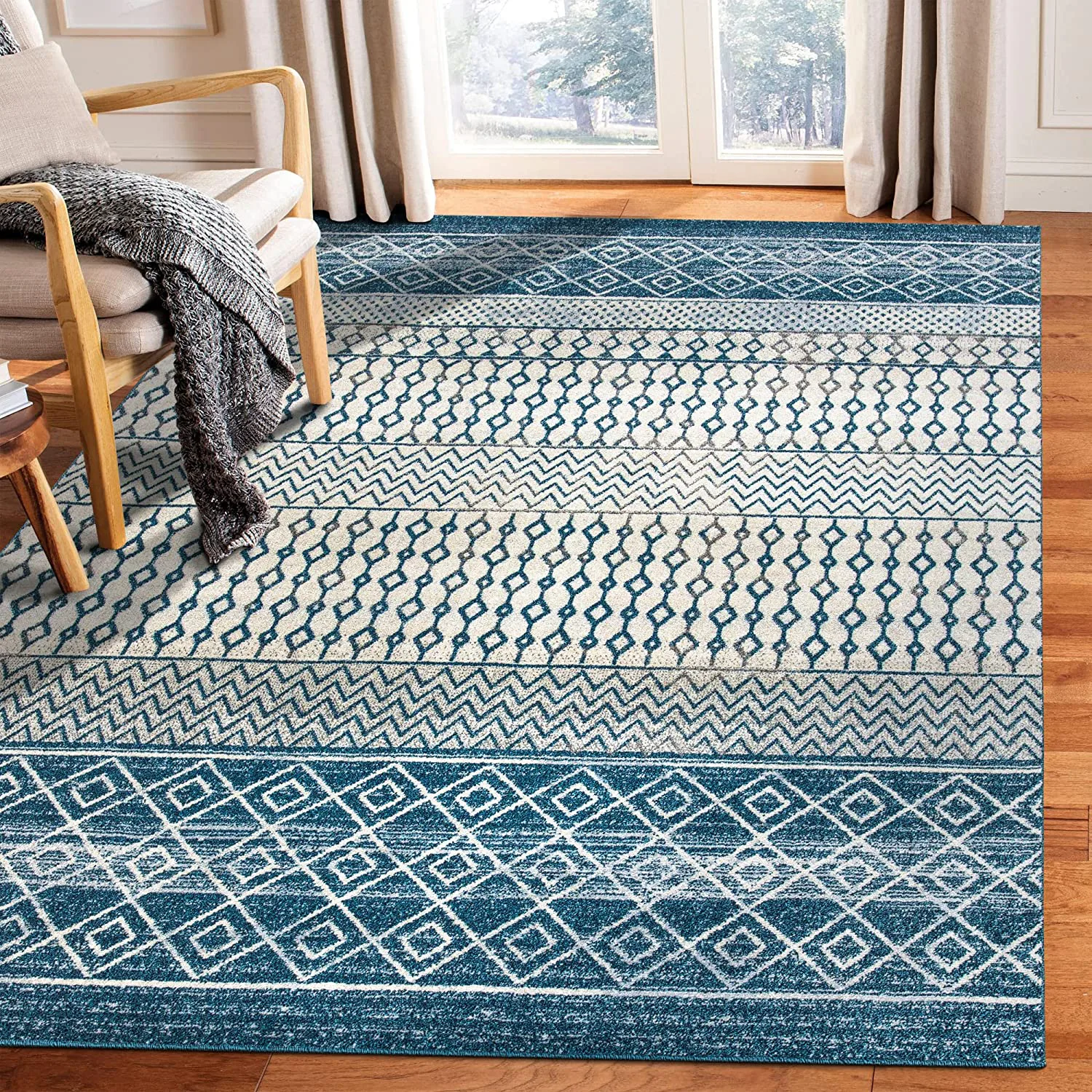 Unlike some area rugs that can block doors from swinging open, this one has a super-low pile that easily fits into any space. The Turkish style is incredibly in demand at the moment, making it a stylish addition to any home — and you even have the choice of seven sizes as well as three different colors: black, blue, or grey.