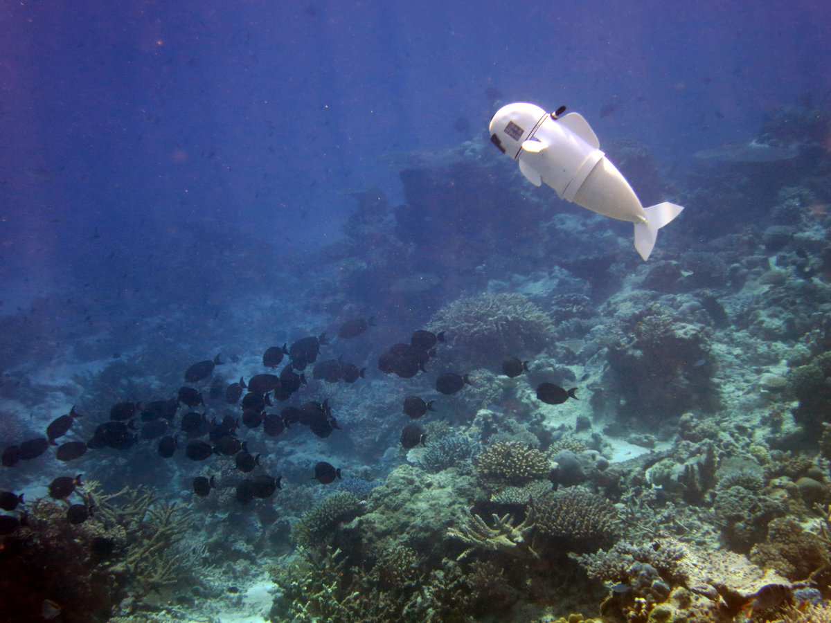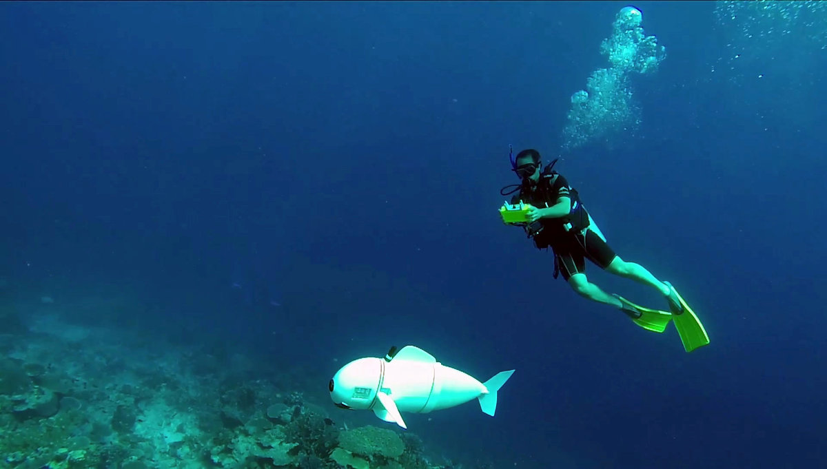 Existing autonomous underwater vehicles typically are tethered to boats and powered by propellers or jets that can disrupt the natural environment. SoFi swims alongside fish and other marine creatures without sending them fleeing.