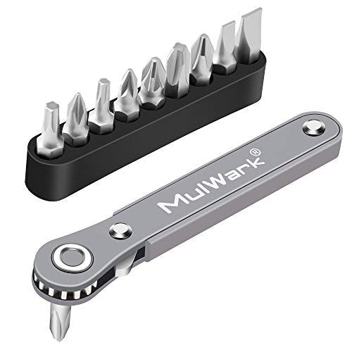 MULWARK 11pc Right Angle Screwdriver 1/4 Mini Ratchet Wrench Close Quarters Pocket Screwdriver Set with High Torque & Low Profile- EDC Tool with 90 Degree Mini Offset Reversible Drive Handle