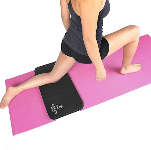 Getting down on your knees when practicing yoga can leave them feeling sore. Luckily, this cushion is an easy fix. It’s filled with advanced closed-cell foam that won’t absorb sweat or other liquids, while a nonslip underside helps keep it from shifting around. And each order comes with a mesh storage bag for easy storage.