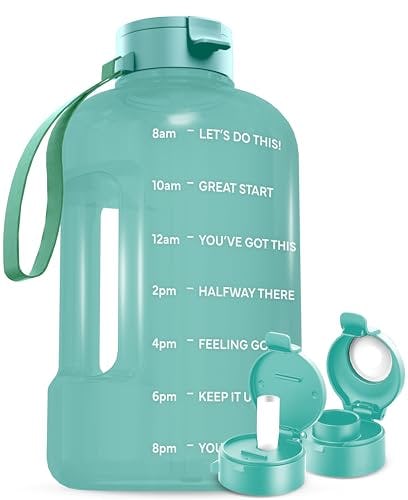Available in seven color options, this 1-gallon water bottle has a built-in handle for portability, a wrist strap for security, and two interchangeable lids for both chugging and sipping through a straw. Most importantly, it has motivational time markers on the side, which serve as a reminder to drink more water throughout the day.
