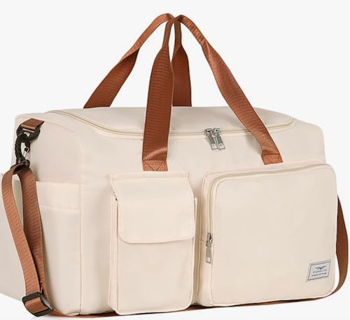 Stylish, affordable, and well-designed with a removable shoulder strap and a luggage slip, this duffle bag is great for the gym as well as weekend trips. It has a 37-liter capacity with plenty of storage, including a wet pocket and a separate compartment for your shoes — plus it comes with a free toiletry bag.