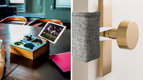 This couch caddy has an impressive 4.8-star average rating, and you’ll love how the silicone and wood construction are built to withstand frequent use. The four compartments give you a spot for your favorite drinks and snacks, and the rotating bracket is the perfect perch for your phone or tablet. Plus, the nonslip backing helps keep the caddy stable while sitting on your sofa. The tray comes in five colors.