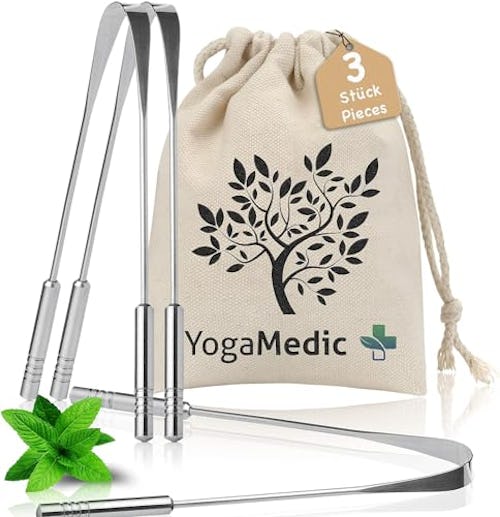 YogaMedic Tongue Scraper for Adults & Kids, 100% Stainless Steel Cleaner - Tongue Cleaners with Travel Case, Personal Care Products, Oral Dental Care, Bad Breath Treatment for Adults, U Shape, 3 Pack