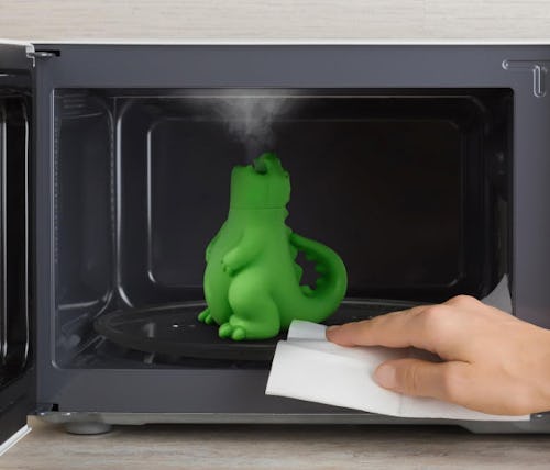 A silicone dragon that ‘breathes’ steam to quickly clean your microwave