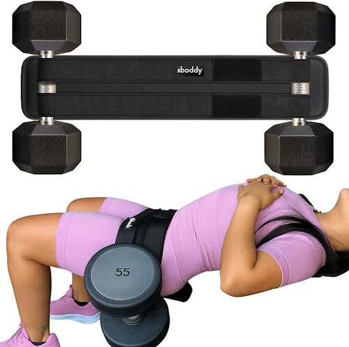You don’t have to buy a separate set of barbells if you want to perform back squats, hip thrusts, or glute bridges — just grab this strap. Simply loop your dumbbells into both ends, and you’ll instantly be able to do a variety of exercises that would normally require barbells. Plus, the padded material won’t put uncomfortable pressure on your hips.