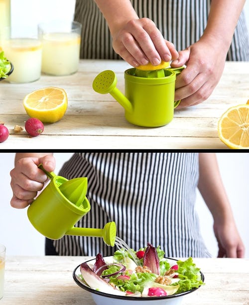 This hand juicer lets you juice your favorite citrus fruits and then easily pour the contents over your meal. Made with food-grade plastic, the cute watering can holds 8 ounces of liquid — and the top flips into the container for more compact storage. For easy cleaning, you can put it in the dishwasher.