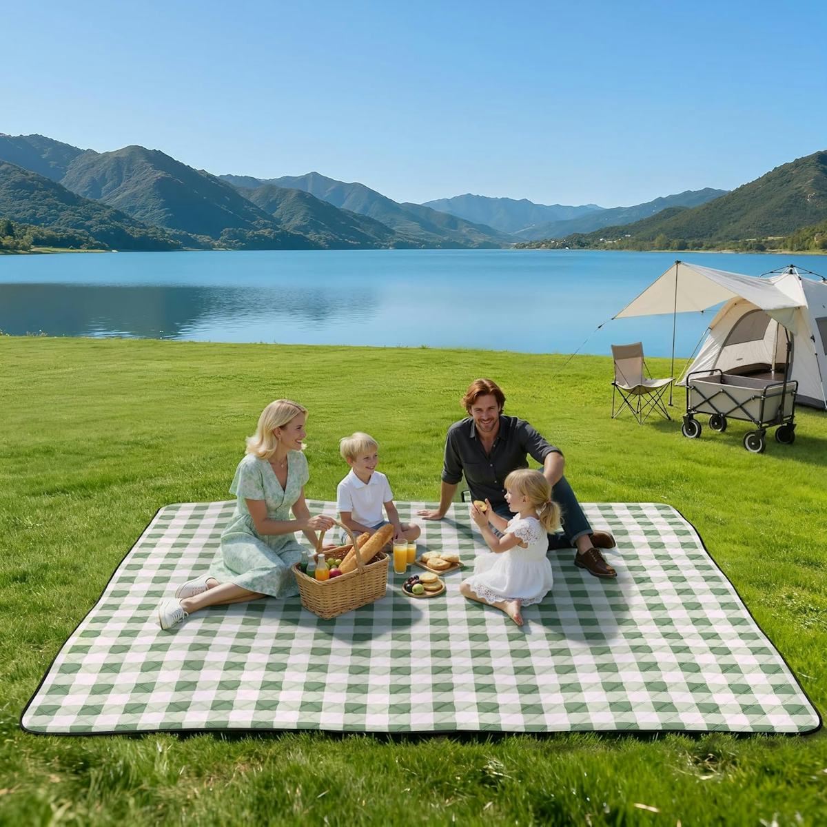 A waterproof outdoor blanket that rolls up for toting
