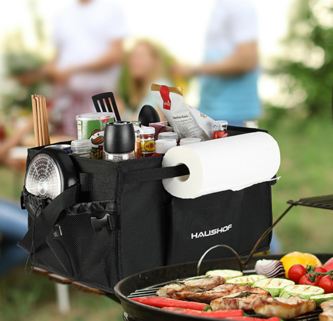 A handy grill or picnic caddy that folds for storage