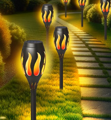 If you love the look of a torch light but don’t love the idea of open flames all over your yard, then try these solar flame lights. They mimic the look of a torch light, and look nice as pathway lights or around a deck or garden. The best part is the solar-power element, so they charge in the sun and turn on and off automatically at dusk and dawn.