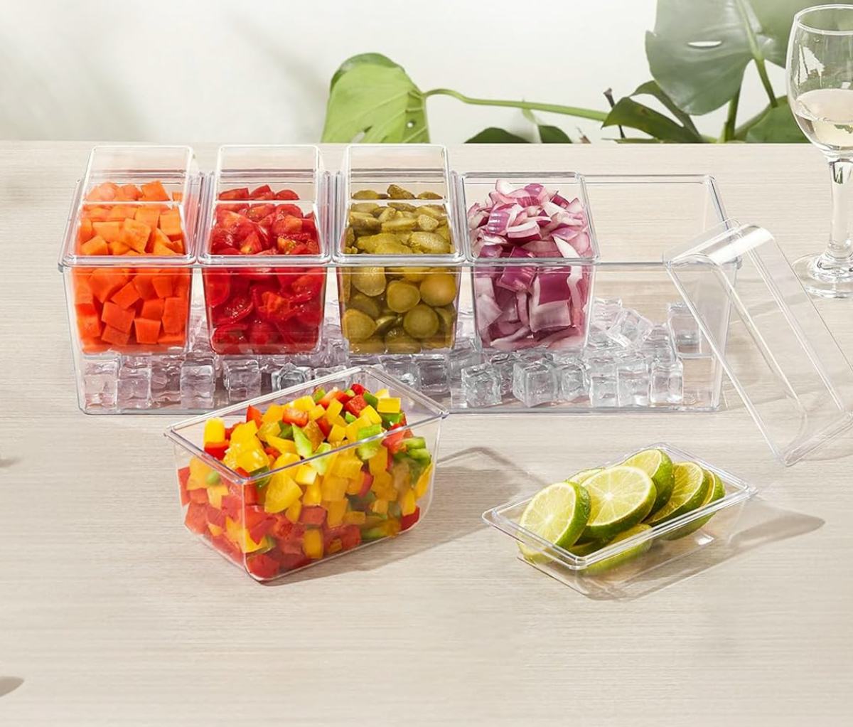 A clever condiment tray on ice to keep things chilled
