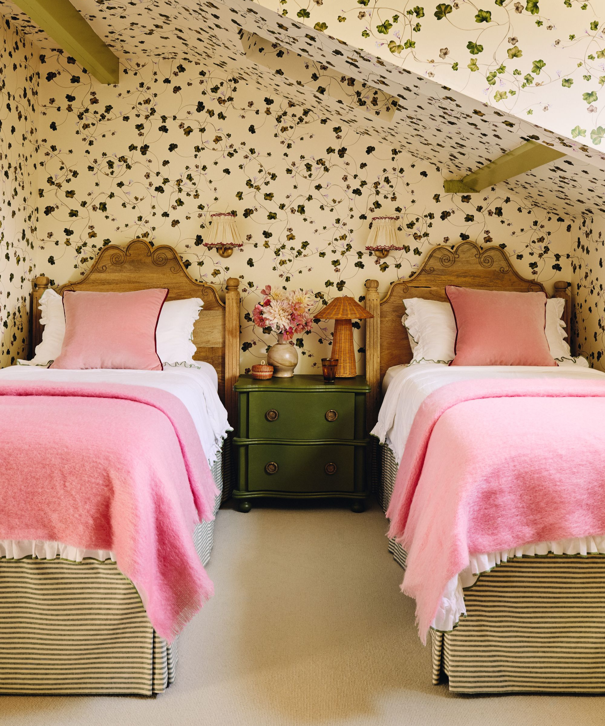 Symmetry is like repetition in that it's an interior design principle that can help establish cohesion and harmony in a space. The only difference – symmetry usually involves perfect mirroring while repetition has a bit more freedom. However, symmetrically designed spaces always have some elements of repetition incorporated in their schemes – like the twin bedroom above.