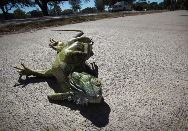 FORT LAUDERDALE, Fla. — When temperatures drop, so do green iguanas — from the trees. But evolution, it seems, could be robbing South Floridians of a tradition as common as checking the heat index on New Year's Day.