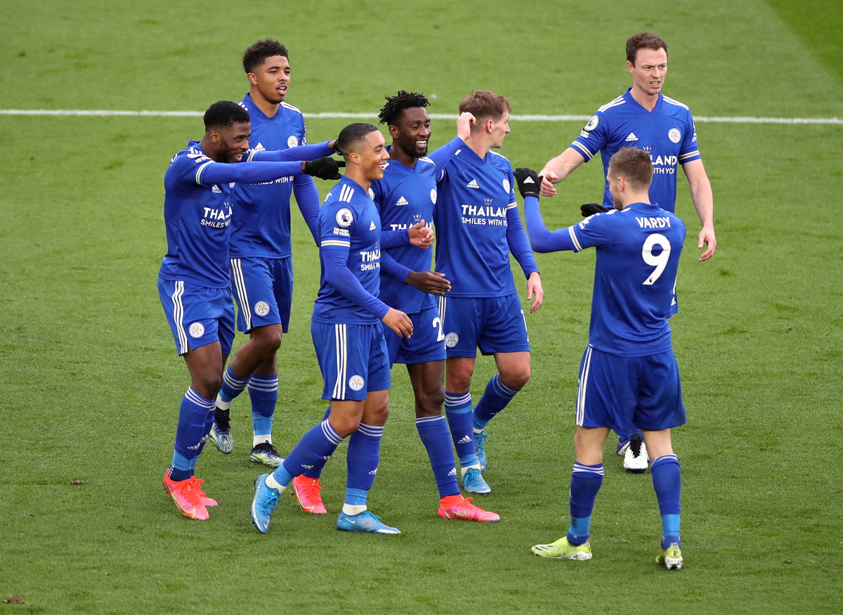 Vardy's shot was turned into his own net by Ethan Ampadu to complete the rout as Leicester climbed up to second spot on 56 points after 29 games, two ahead of Manchester United who play West Ham United later on Sunday.