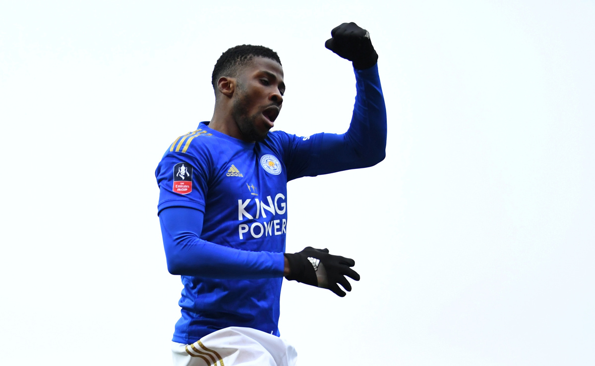Soccer Football - FA Cup Fourth Round - Brentford v Leicester City - Griffin Park, Brentford, Britain - January 25, 2020 Leicester City's Kelechi Iheanacho celebrates scoring their first goal REUTERS/Dylan Martinez