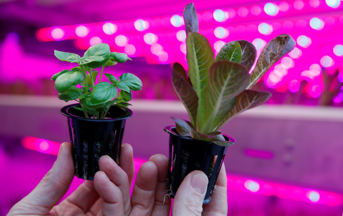 The system, known as hydroponic farming, means the plants need no soil or pesticides, and use 90 percent less water and less than half of the area of conventional farming, with the LED lights to be powered by renewable energy, IKEA said.