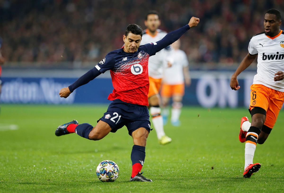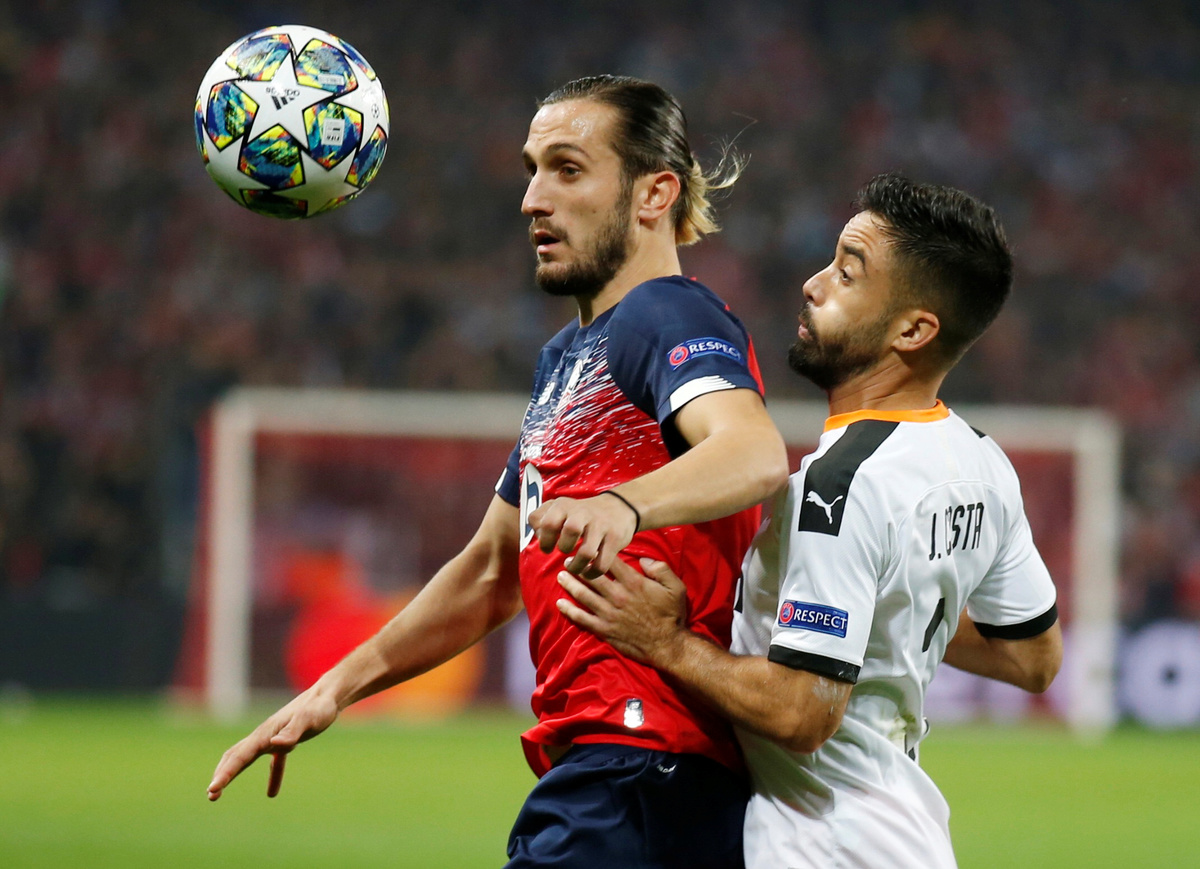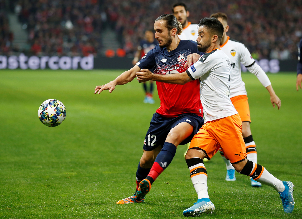 Soccer Football - Champions League - Group H - Lille v Valencia - Stade Pierre-Mauroy, Lille, France - October 23, 2019 Lille's Yusuf Yazici in action with Valencia's Jaume Costa REUTERS/Pascal Rossignol
