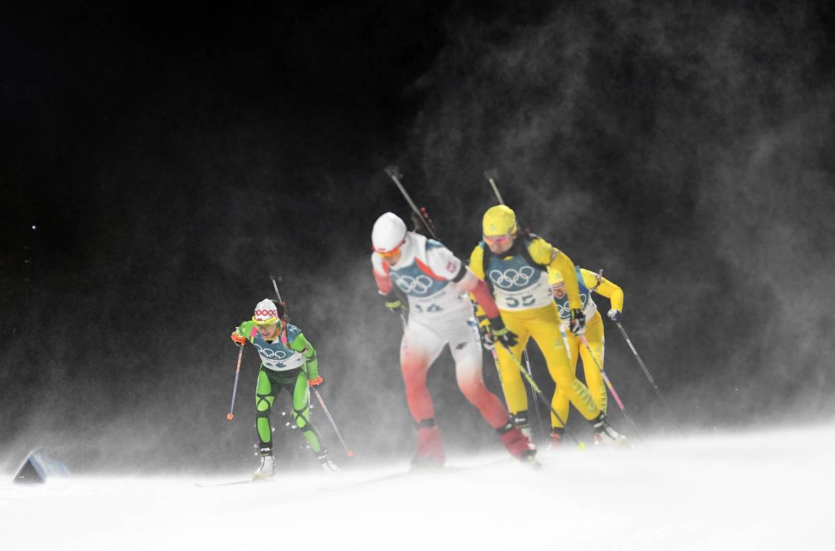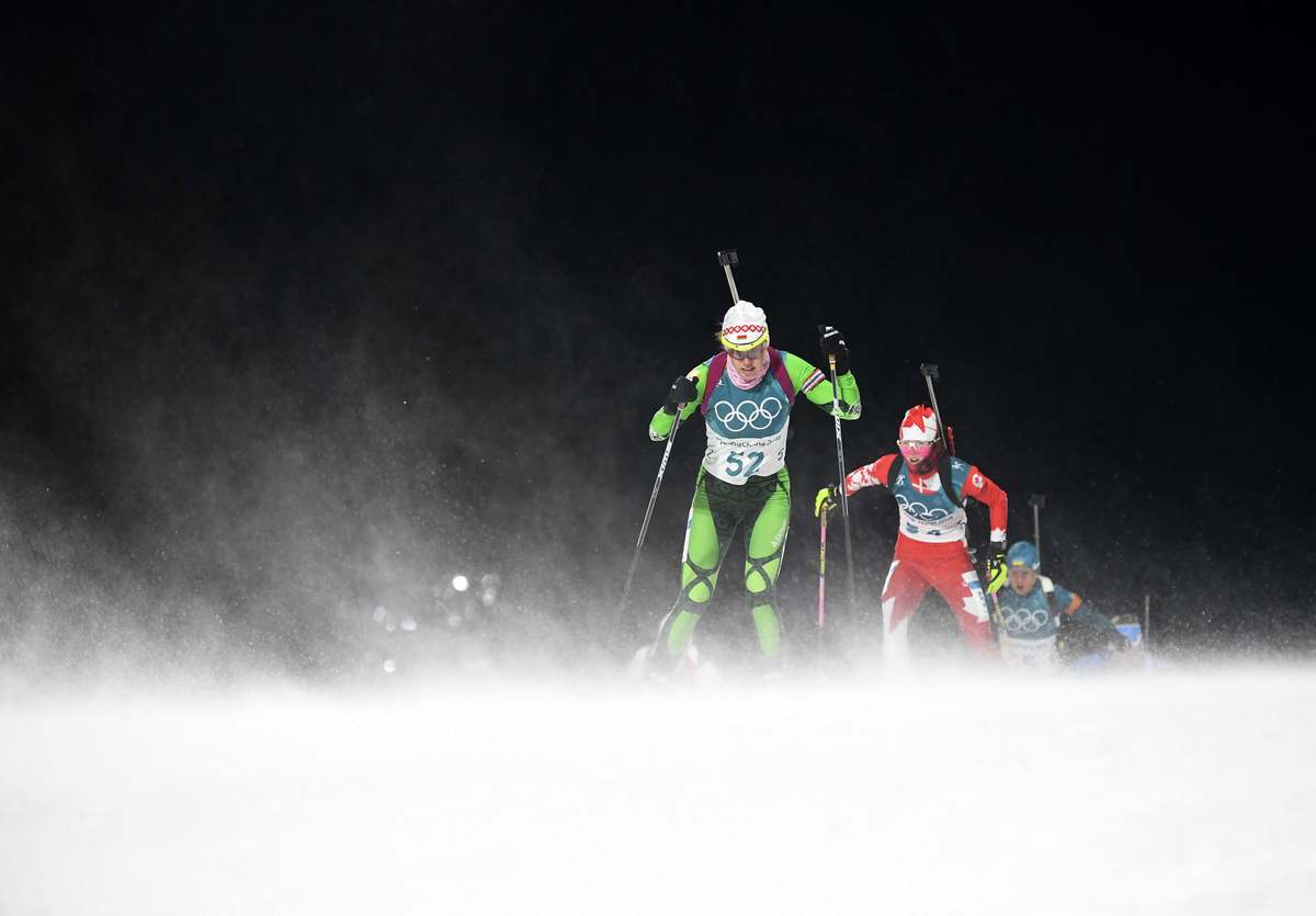 Competitors, officials and a few brave fans made their way around the Olympic venues wrapped in layers of scarves, hats and thick coats as the biting wind added a significant chill factor to temperatures already down around minus 20 degrees Celsius.