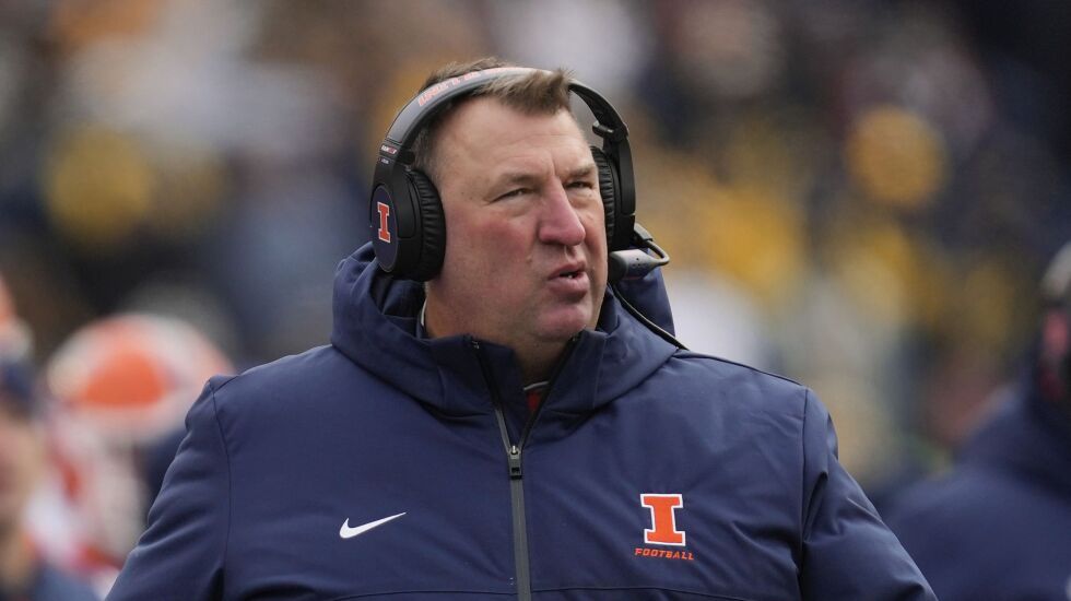 “He has assembled an exceptional staff, developed the existing players on our roster, and recruited talented student-athletes to join our program,” Illinois athletic director Josh Whitman said. “He has worked tirelessly, with an eye for detail and tremendous competitive urgency, to set a new standard of excellence for Fighting Illini Football. Perhaps most importantly, he has brought an immediate identity to our football program and represented the University of Illinois with class, humility, and confidence.”